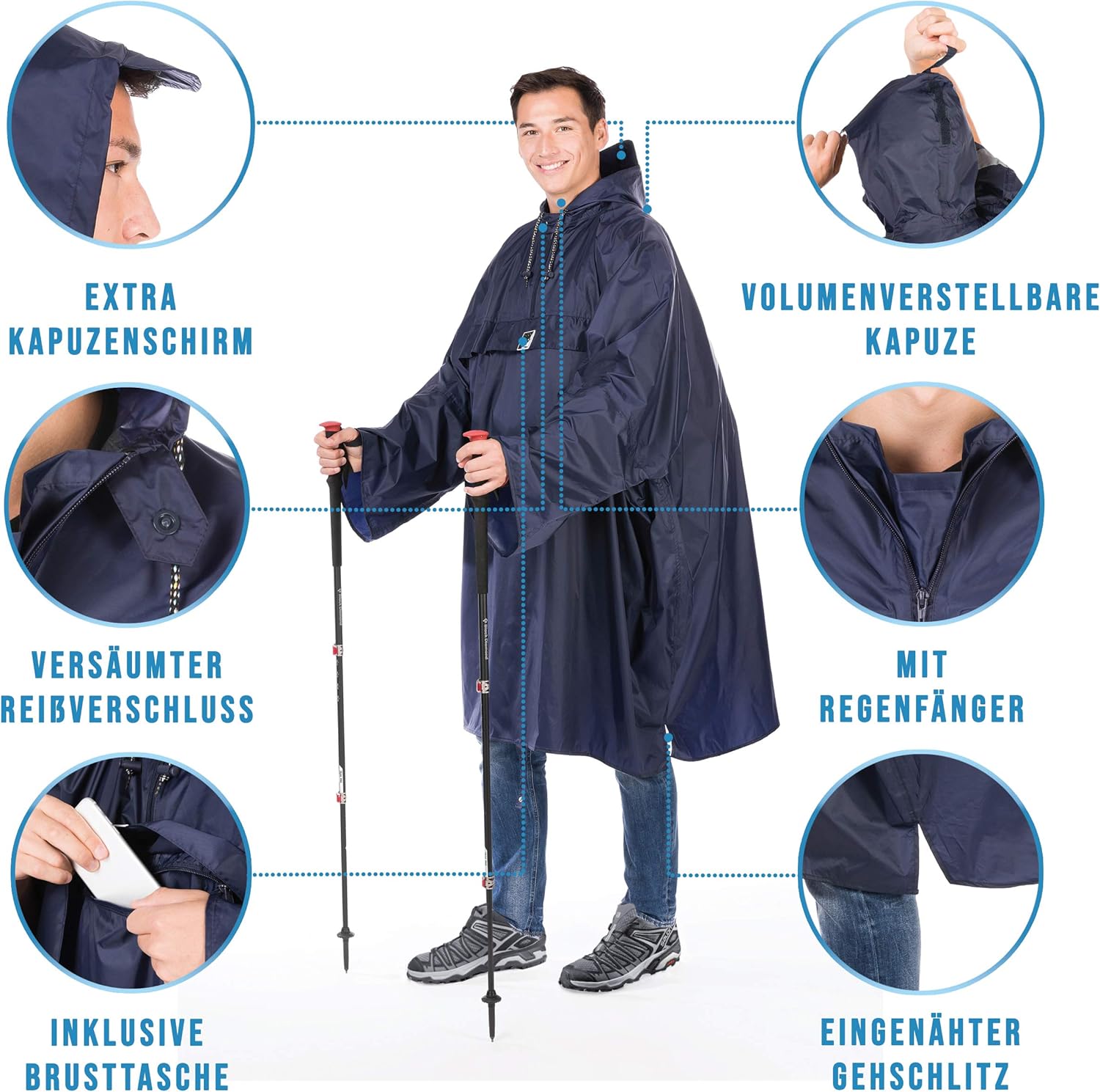 Mit diesem Poncho sind Sie optimal und äußerst komfortabel bei Ihrer Berg - oder Wandertour vor Wind und Regen geschützt!